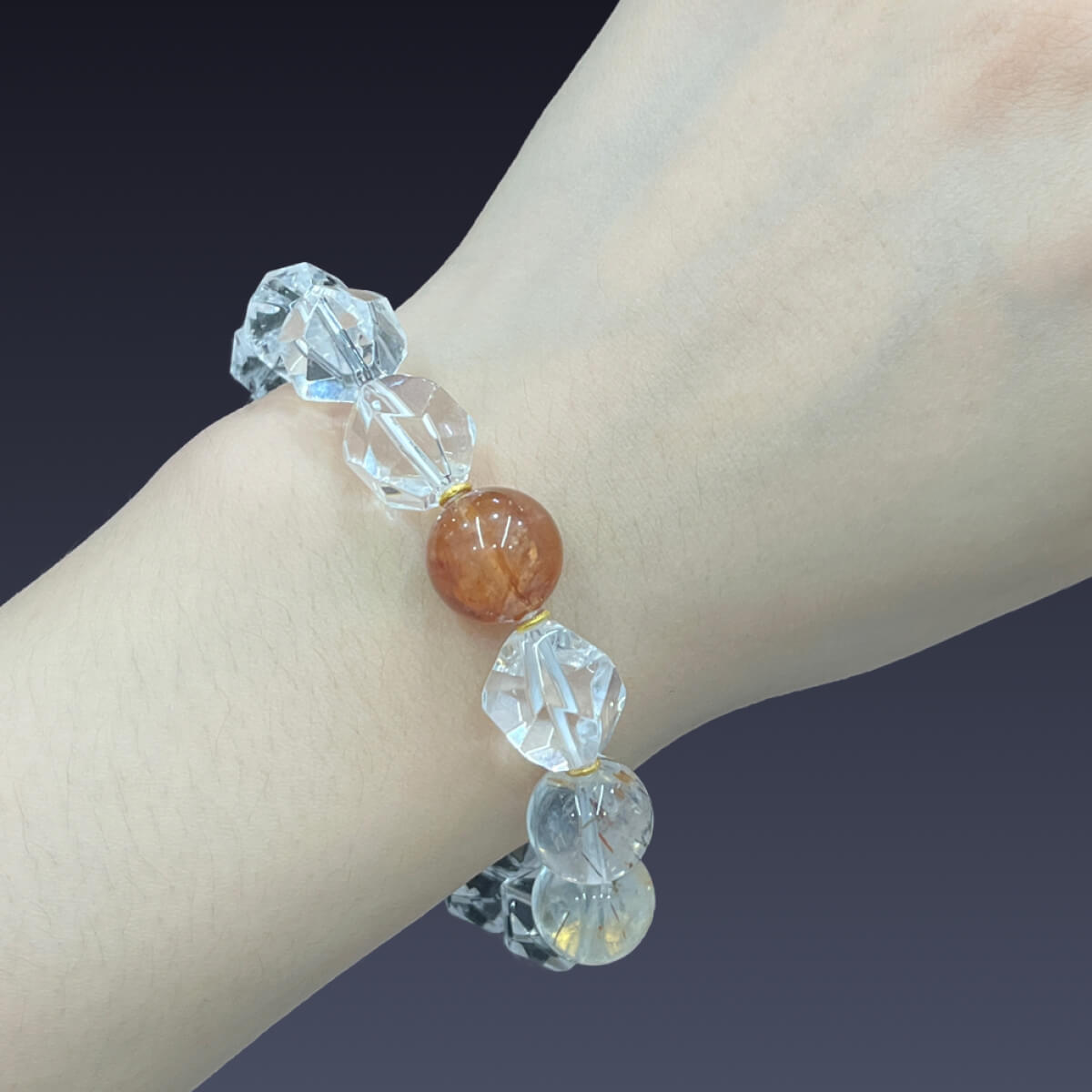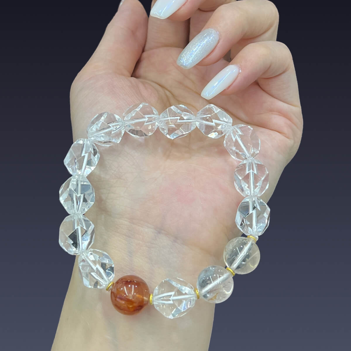 Faceted Clear Quartz and Flower Agate Bracelet with Powerful Cleansing Energy, Panidea JewelryFaceted Clear Quartz and Flower Agate Bracelet with Powerful Cleansing Energy, Panidea Jewelry